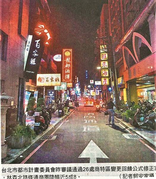 根據民國108年10月4日聯合報B2版記者魏莨伊「條通商家回饋金,拍板打4到6折」、自由時報A18版記者郭安家「26商特區違規業者回饋金下修,最多近6成」等報導,台北市都市計畫委員會於民國108年10月3日審議通過台北市26處商特區變更回饋公式修正案,主要是1995年起因應商業發展需求,北市府特別將這26處住宅區變更為商特區,並且要求業者以回饋金方式合法化,但過去回饋金少則數十萬多則超過一千萬,多數業者至今不願繳納,如今通過修正案大幅下修回饋金三成多至近六成,受惠者大多為大型餐廳、八大行業和台北市市長柯文哲要求合法化的條通酒店,最公告上路,對於外界質疑對於違規業者大放送,市府回應是為了促進產業發展。